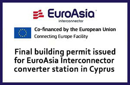 Nicosia, July 24, 2020 – The Republic of Cyprus has issued the final building permit to EuroAsia Interconnector, the official project developer of the European Project of Common Interest PCI 3.10 Israel-Cyprus-Greece (Crete), for the construction of the high voltage direct current (HVDC) converter station in Cyprus.