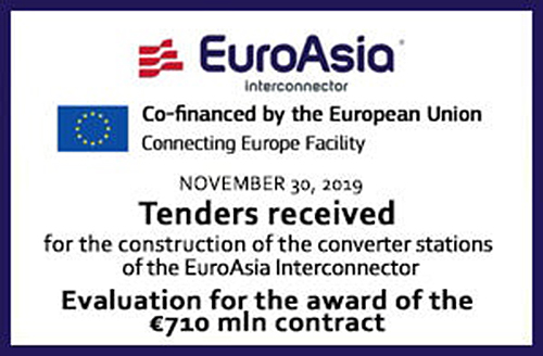 Nicosia, November 30, 2019 EuroAsia Interconnector Limited, the official project promoter of the European electricity interconnection project PCI 3.10 linking the national grids of Israel, Cyprus and Greece, announces the receipt of binding tenders for the construction of the three converter stations of the EuroAsia Interconnector from a world-leading organisation in the energy sector.